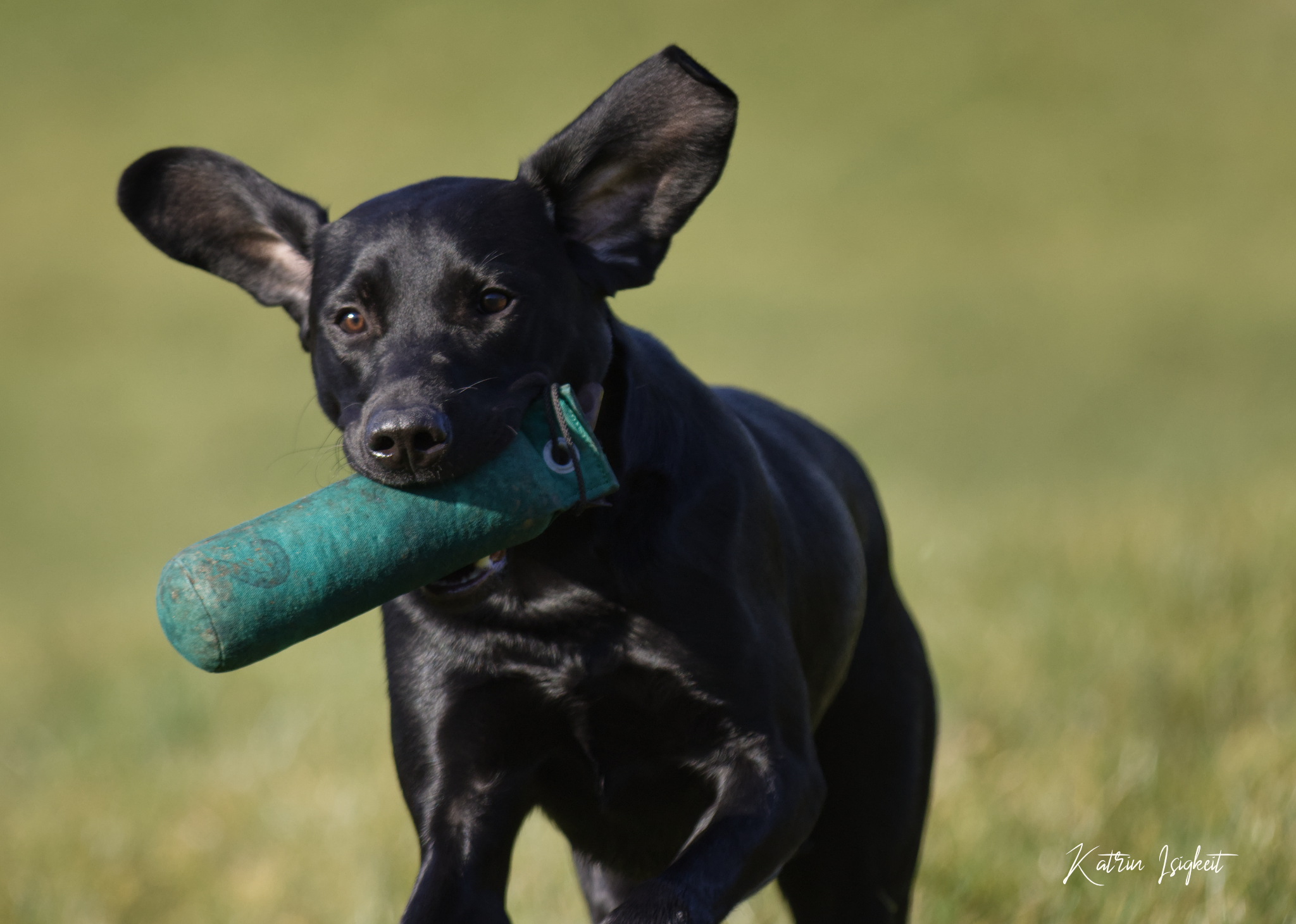 Sie ist eine sehr freundliche Hündin die super nett zu allen Hunden und Menschen ist. Immer fröhlich und gut gelaunt. Die Freude die sie beim Apportieren hat ist nicht zu übersehen. Am schönsten ist ihre Startposition und der enorme "Hinterrad Antrieb " was uns immer ein lächeln ins Gesucht zaubert...
